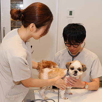 獣医師の豊富な経験と専門分野を活かし、予防診療はもちろん、一般総合診療・手術、ペットのライフステージや健康状態に合わせたカスタマイズ可能な様々な健康診断メニューなどを通して一日でも長くご家族みんなが笑顔でいられるよう、心をこめて皆さまの日常をサポートいたします。