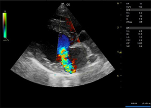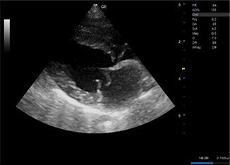 明らかな腹水貯留は認められなかった。 - 心エコー図検査にて、僧帽弁の逸脱とそれに伴う僧帽弁逆流が認められた。